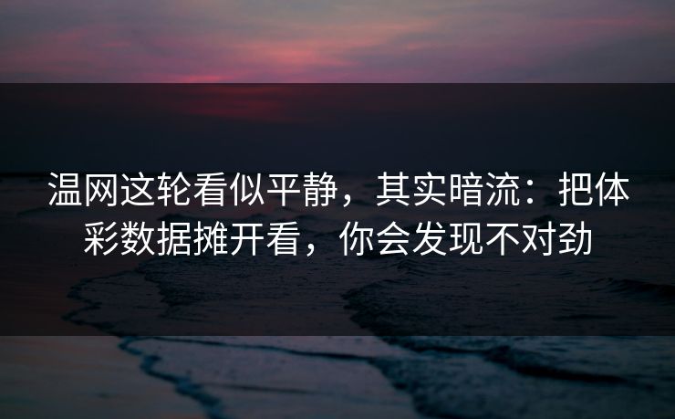温网这轮看似平静,其实暗流:把体彩数据摊开看,你会发现不对劲