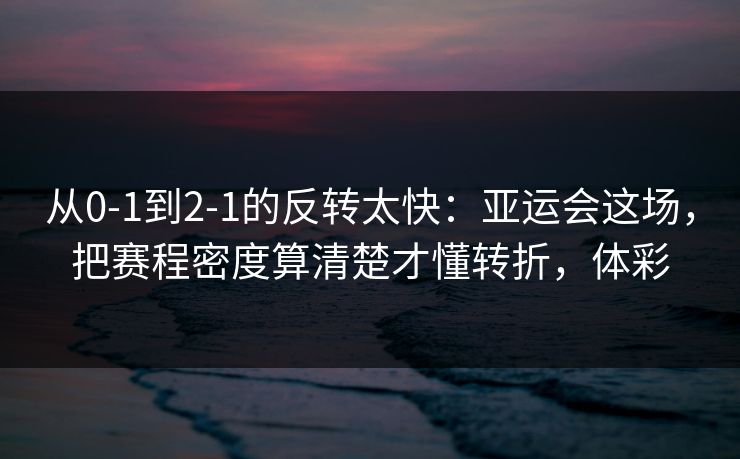 标题:从0-1到2-1的反转太快:亚运会这场,把赛程密度算清楚才懂转折,体彩