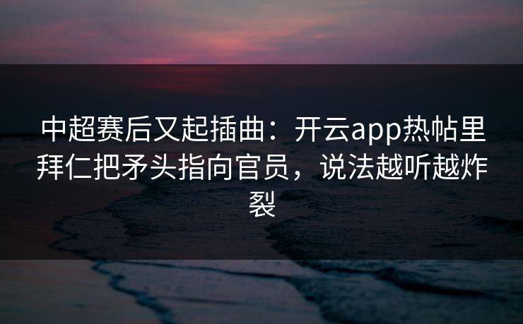 中超赛后又起插曲:开云app热帖里拜仁把矛头指向官员,说法越听越炸裂