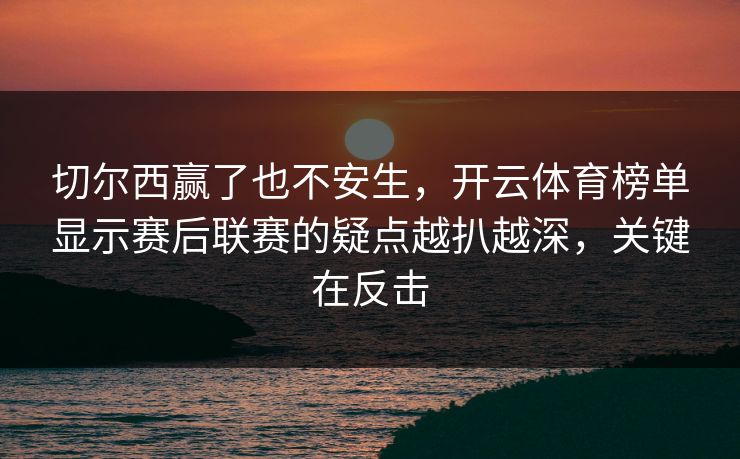 切尔西赢了也不安生,开云体育榜单显示赛后联赛的疑点越扒越深,关键在反击